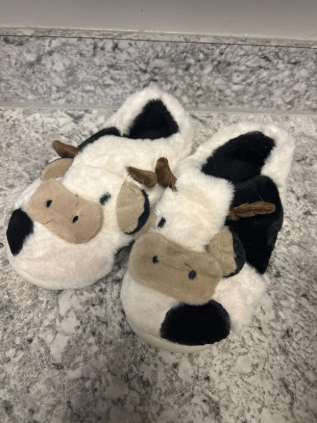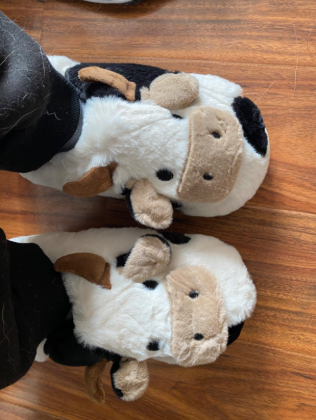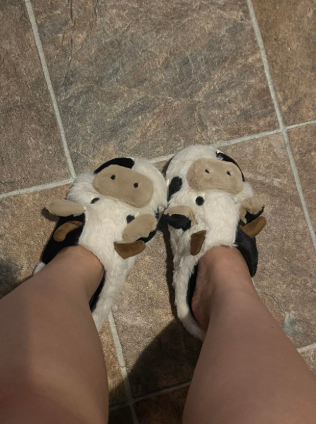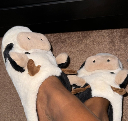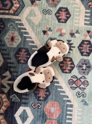 I bought them as a joke because they’re cow slippers, but honestly they’re the first thing I reach for when I get home. They feel like little pillows on my feet.
